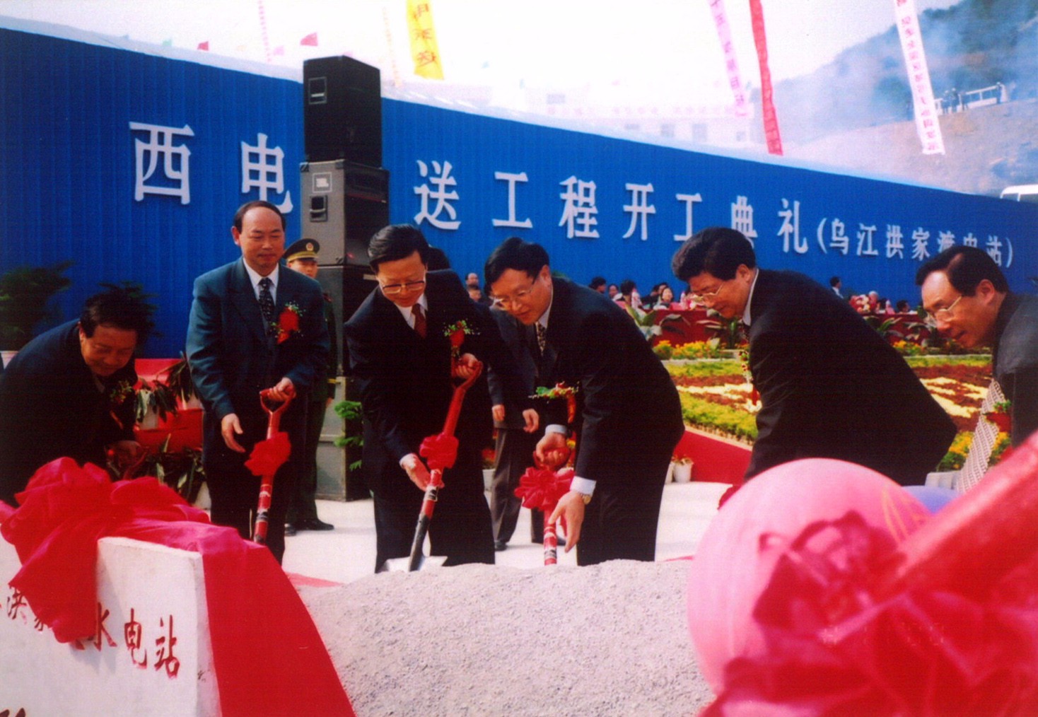 為了樹(shù)立信心,營(yíng)造一定的建設(shè)氛圍是十分必要的。我決定要以大的聲勢(shì)拉開(kāi)西電東送工程的序幕,經(jīng)商南方電力公司和云南、貴州、廣西、廣東省,把西電東送工程的第一個(gè)開(kāi)工典禮選擇在貴州烏江上的洪家渡水電站舉行,同時(shí)東風(fēng)水電站、引子渡水電站和烏江渡水電站擴(kuò)機(jī)等六個(gè)項(xiàng)目也同時(shí)開(kāi)工。主會(huì)場(chǎng)設(shè)在洪家渡水電站。