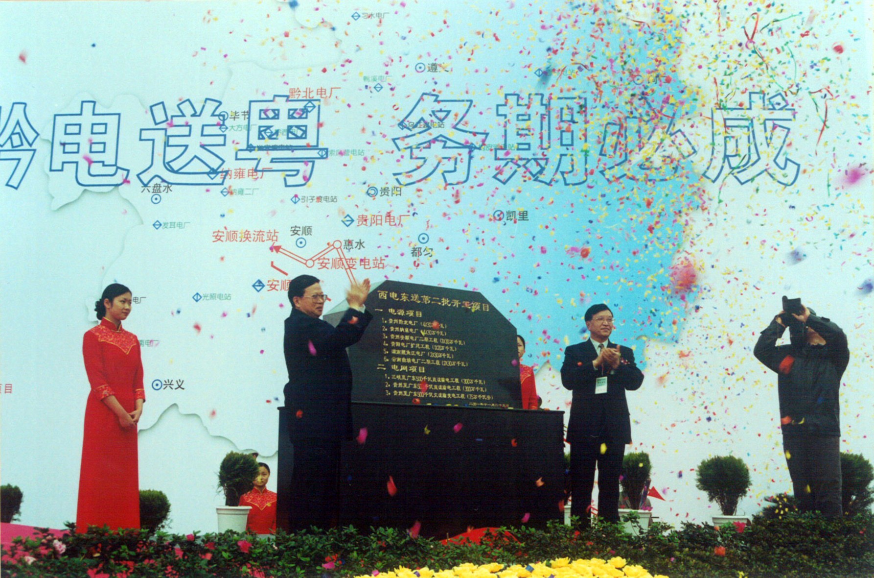 不久我們又組織了更大規(guī)模的第二次西電東送工程開(kāi)工項(xiàng)目,一共有六個(gè)電源項(xiàng)目和三項(xiàng)輸工程項(xiàng)目,共計(jì)九個(gè)項(xiàng)目同時(shí)開(kāi)工。電源項(xiàng)目有貴州的黔北電廠(chǎng)、納雍電廠(chǎng)二期、安順電廠(chǎng)二期、貴陽(yáng)電廠(chǎng)擴(kuò)建,湖南的鯉魚(yú)江電廠(chǎng)和云南曲靖電廠(chǎng)二期工程也同時(shí)開(kāi)工。