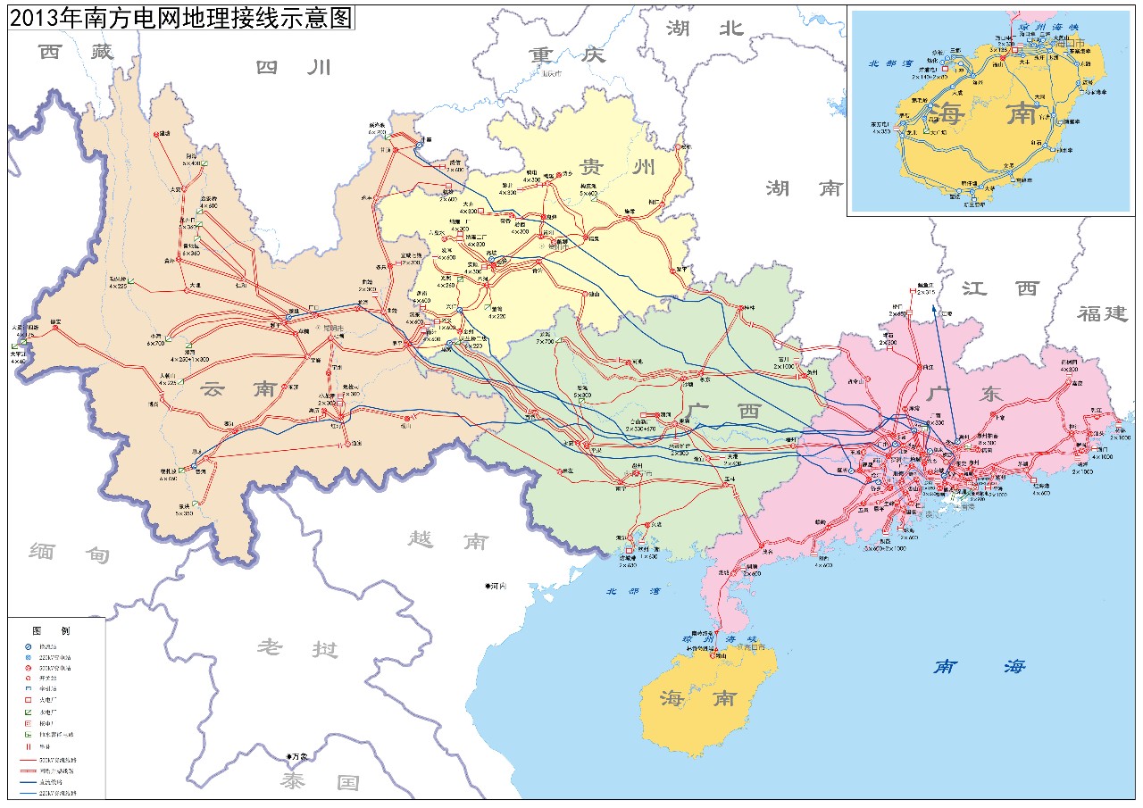西電東送有三條通道,北通道是從陜晉蒙能源金三角輸往京津地區(qū),現(xiàn)在則包括從新疆和河西走廊、寧夏向華北、華中、華東的送電;中通道是從三峽輸往華東地區(qū),現(xiàn)在又加上了將金沙江和川渝水電輸往華東電網(wǎng);南通道是本文所述從云南、貴州將主要為水電的電力輸往珠江三角洲。