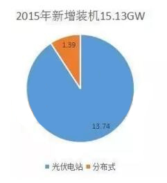 2015年新增裝機15.13GW,分布式1.39GW,占9.19%
