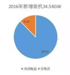 2016年新增裝機34.54GW,分布式4.23GW,占12.25%