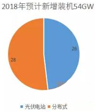 2018年預計新增裝機54GW,分布式28GW,占51.85%