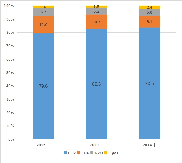 圖1 2005-2014年中國溫室氣體排放種類構成